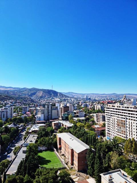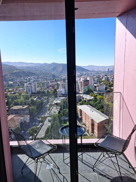 2-roomed 60 sq.m. apartment for rent in Avlabar, on K. Tsamebuli ave, in new premium class building, on the 20th floor, new renovated, with central heating, open plan living room, air-conditioner, furniture, technique, internet, balcony with beautiful views, concierge service