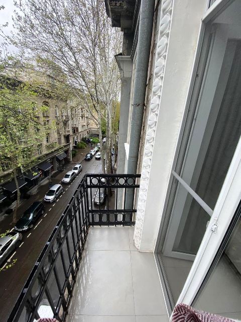 4-roomed 88 sq.m. apartment for rent in Vake, on Paliashvili str, on the 4th floor, new renovated, with central heating, air-conditioner, furniture, technique, internet, balcony