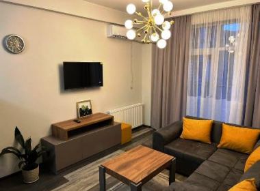 2-roomed 50 sq.m. apartment for rent in Saburtalo, on Pekin ave, in new building, on the 6th floor, new renovated, with central heating, open plan living room, central heating, air-conditioner, furniture, technique, internet, balcony