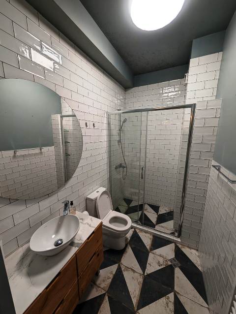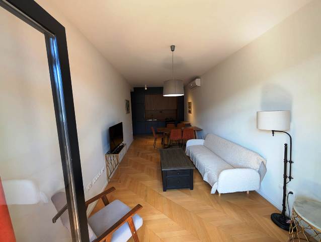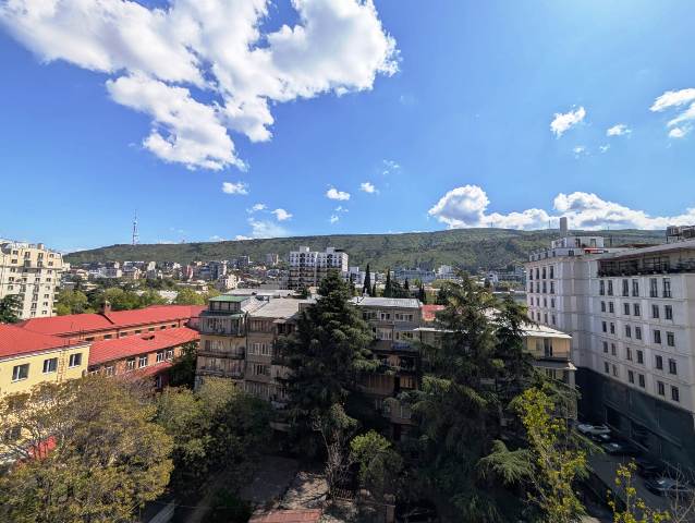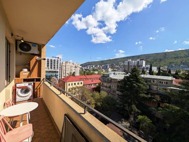 2-roomed 70 sq.m. apartment for rent in Vake, on Chavchavadze ave, in new building, on the 8th floor, new renovated, with central heating, air-conditioner, open plan living room, furniture, technique (dishwasher), internet, balcony