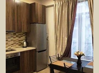 2-roomed 55 sq.m. apartment for rent in Saburtalo, on Anjaparidze (Sandro Euli) str, in new building, on the 4th floor, new renovated, with central heating, air-conditioner, furniture, technique, internet, balcony