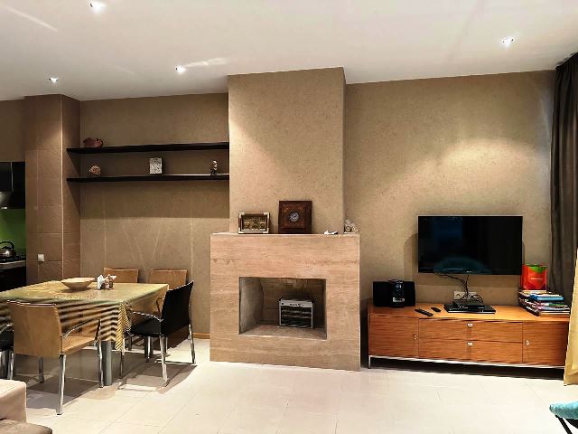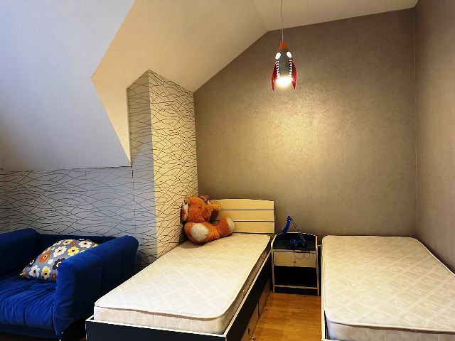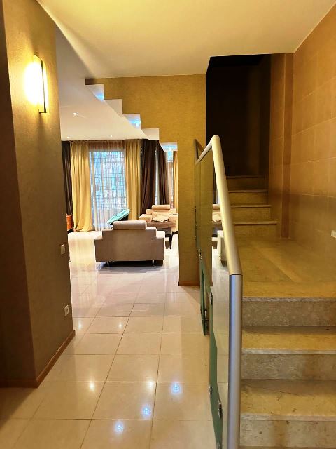 4-roomed 120 sq.m. apartment for rent in Tskneti, near Tsiskvili restaurant, on the third floor, new renovated, with central heating, air-conditioner, 2 bathrooms, fireplace, furniture, technique, internet, balcony