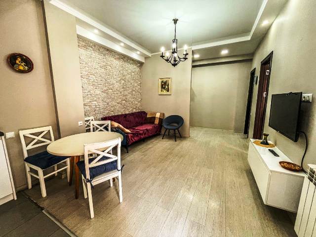 2-roomed 45 sq.m. apartment for rent in Saburtalo, on P. Ioseliani str, in new building, on I floor, new renovated, with central heating, air-conditioner, furniture, technique, internet, balcony