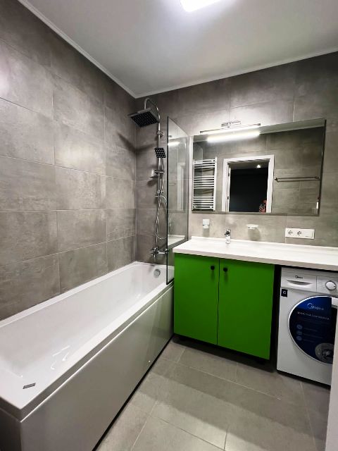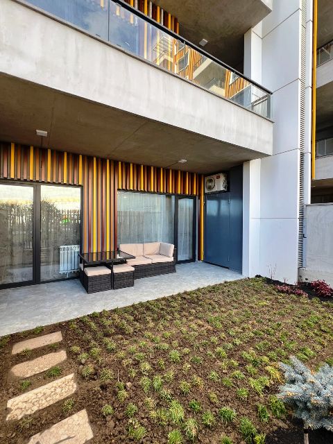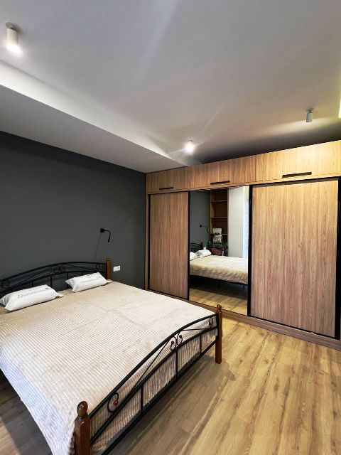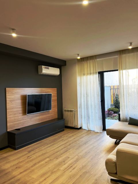 2-roomed 50 sq.m. apartment for rent in Saburtalo, near Lisi, on M. Machavariani str, in new building, on I floor, new renovated, with central heating, air-conditioner, furniture, technique, internet, small yard