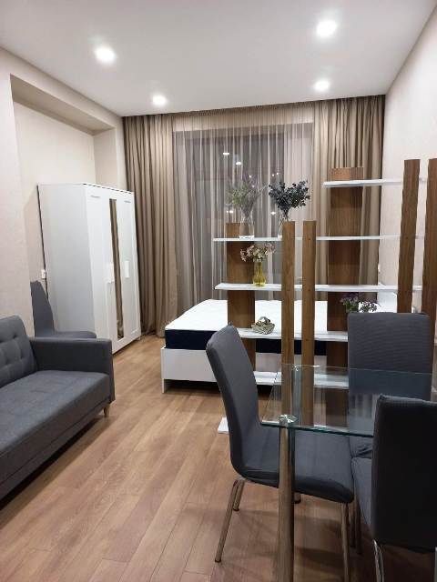 1-roomed 40 sq.m. apartment for rent in Saburtalo, on Kavtaradze str, in new building, on the 6th floor, new renovated, with central heating, air-conditioner, furniture, technique, internet, balcony
