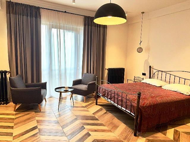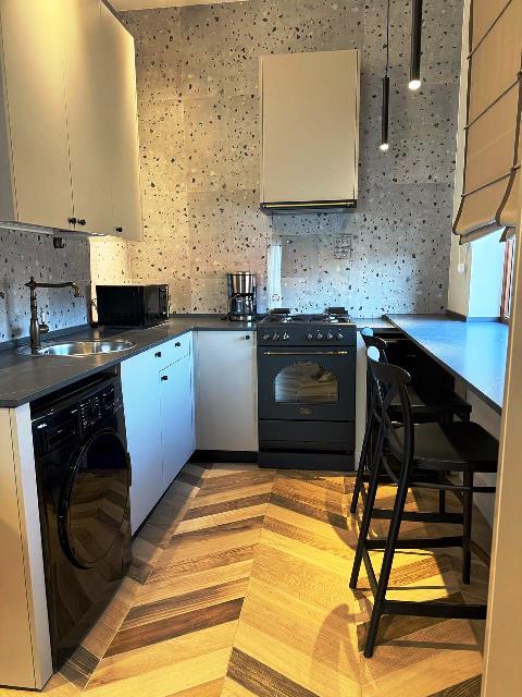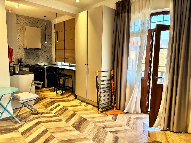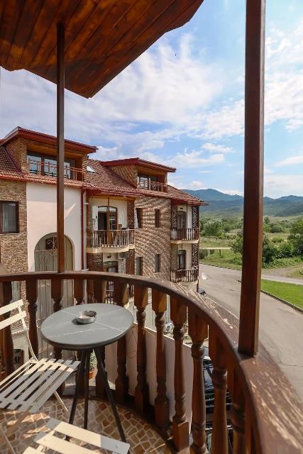 1-roomed 50 sq.m. apartment for rent in Mtskheta, on Antiokia str, in new building, on the third floor, new renovated, with central heating, air-conditioner, furniture, technique, internet, balcony with excellent views on Jvari and Svetitskhoveli, short-term rent is possible