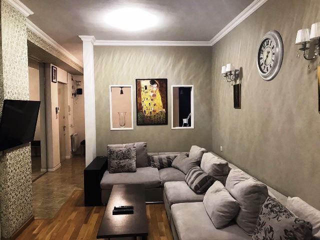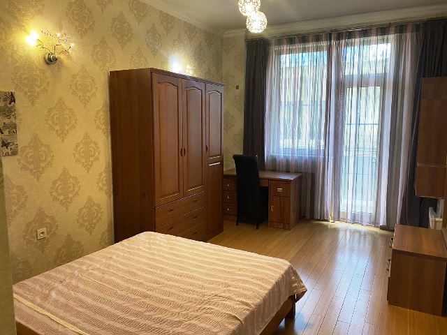 4-roomed 130 sq.m. apartment for rent in Saburtalo, on Kostava str, in new building, on the 3rd floor, new renovated, with central heating, air-conditioner, furniture, technique, internet, balcony