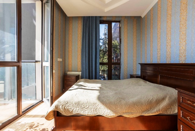 4-roomed 120 sq.m. apartment for rent in Saburtalo, on Kartozia str, near Central park, in new building, on the 3rd floor, new renovated, with central heating, air-conditioners, furniture, technique, internet, balconies with beautiful views