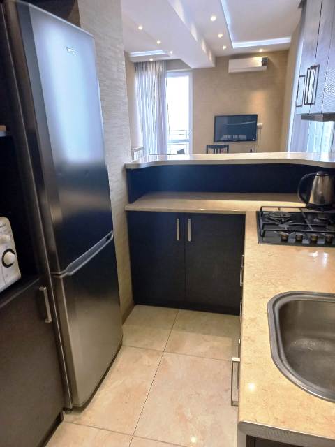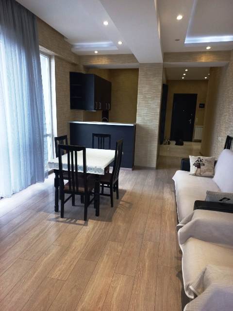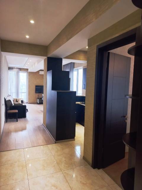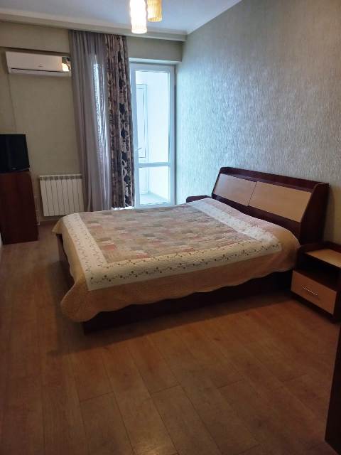 3-roomed 85 sq.m. apartment for rent in Saburtalo, on Apakidze str, in new building, on the 14th floor, new renovated, with central heating, air-conditioner, furniture, technique, internet, balcony with beautiful views