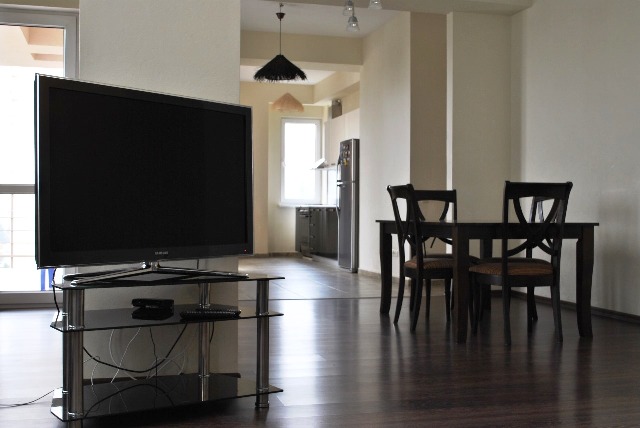 4-roomed 145 sq.m. apartment for rent in Saburtalo, on Panaskerteli str, in new building, on the 5th floor, new renovated, with central heating, air-conditioner, furniture, technique, internet, balcony with beautiful views