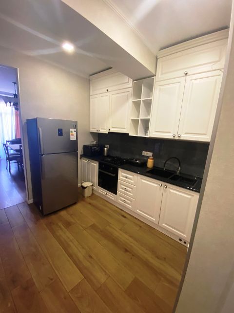 3-roomed 80 sq.m. apartment for rent in Ortachala (Krtsanisi), Laist str, in new building, on the 7th floor, new renovated, with central heating, air-conditioner, furniture, technique, internet, balcony