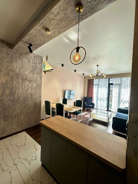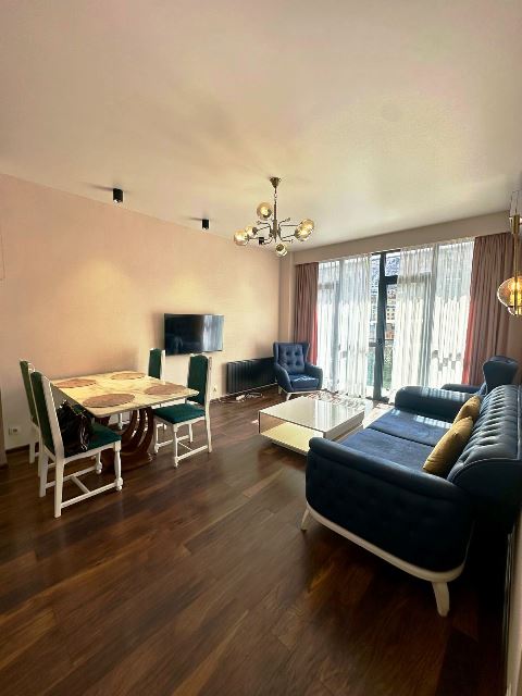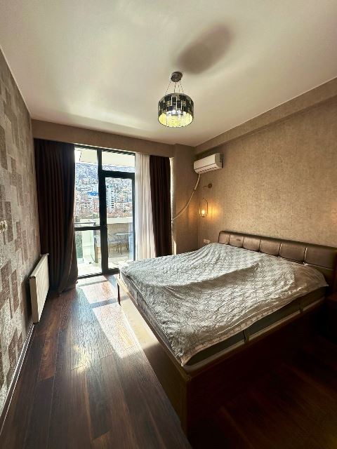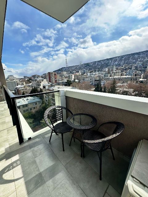 3-roomed 100 sq.m. apartment for rent in Vake, on Chavchavadze ave, in new premium class building, on the 10th floor, new high-quality renovated, with central heating, air-conditioners, 2 bathrooms, all furniture and technique, internet, 2 balconies with beautiful views, concierge service