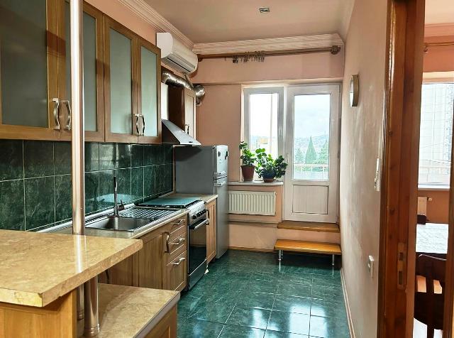 4-roomed 93 sq.m. apartment for rent in Saburtalo, on Kostava str, on the 6th floor, renovated, with central heating, air-conditioner, 2 bathrooms, furniture, technique, internet, balcony