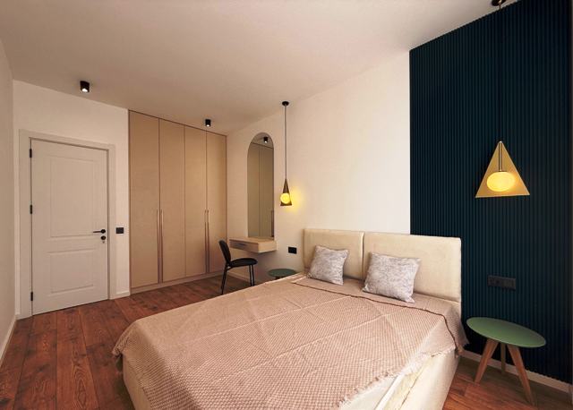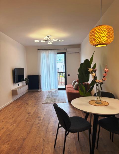 2-roomed 55.5 sq.m. apartment for sale in Saburtalo, on University str, in new prestigious complex, on the third floor, new beautful desugned renovated, with central heating, air-conditioner, furniture, technique, internet, balcony