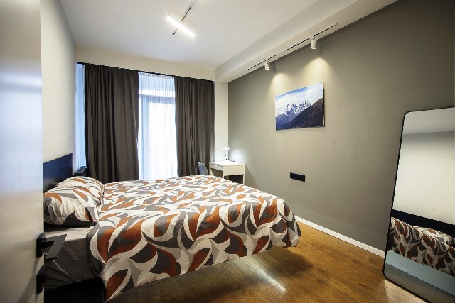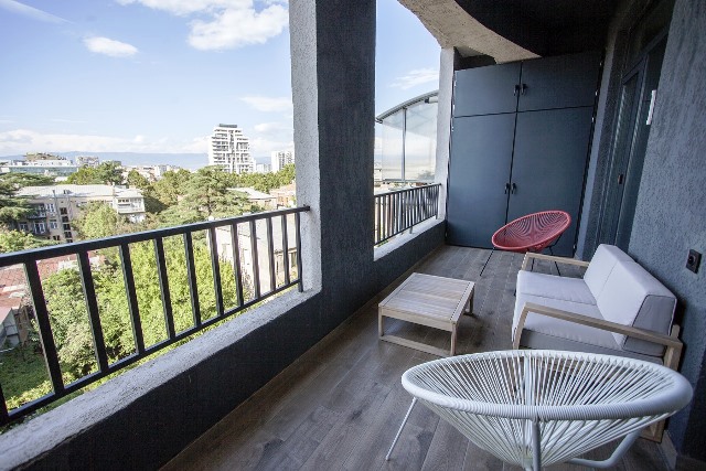 2-roomed 70 sq.m. apartment for rent in Vake, on Mtskheta str, near Round Garden, in new building, on the third floor, new modern rewnovated, with central heating, air-conditioner, wardrobe, all kind of furniture and technique, dishwasher, internet, veranda with beautiful views, parking