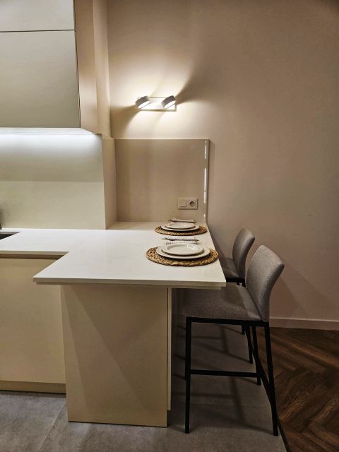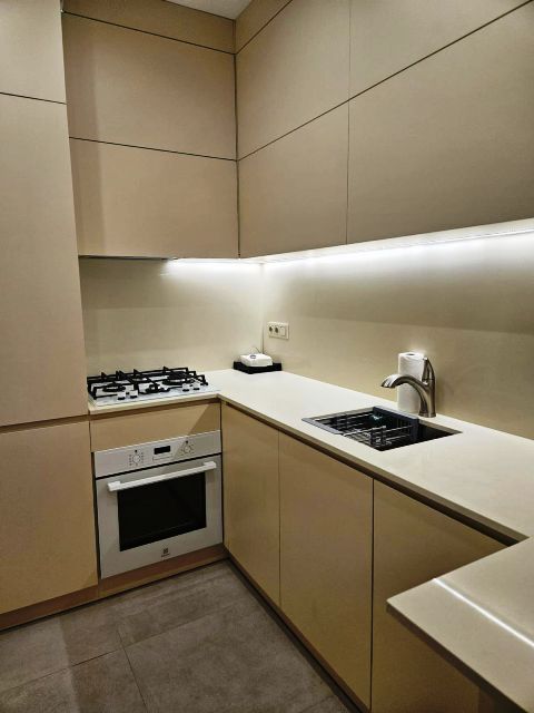 2-roomed 70 sq.m. apartment for rent in Saburtalo, on Bakhtrioni str, in new building of Axis, on the 10th floor, new modern renovated, with central heating, air-conditioner, furniture, technique, dishwasher and drier, internet, veranda with beautiful views, concierge service