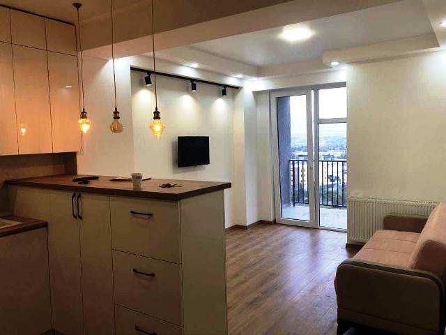 2-roomed 60 sq.m. apartment for rent in Didi Digomi, on Parnavaz Mepe str, in new building of Archi, on the 10th floor, new renovated, with central heating, air-conditioner, furniture, technique, internet, large balcony, concierge service