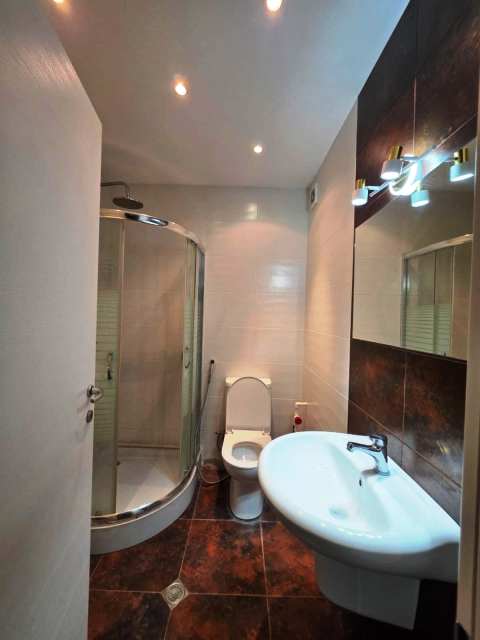 2-roomed 60 sq.m. apartment for rent in Saburtalo, on Kartozia str, in new building of M2, on the second floor, new renovated, with central heating, air-conditioner, furniture, technique, internet, balcony