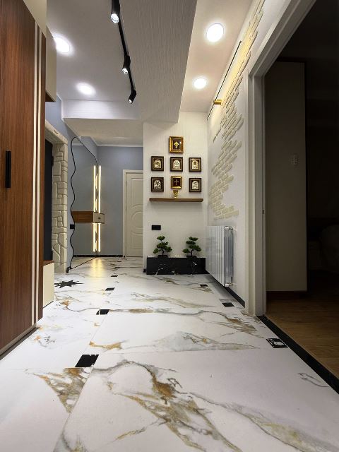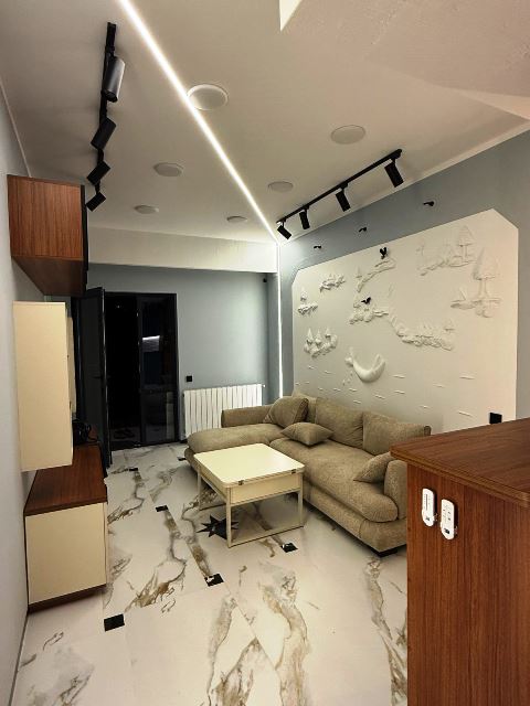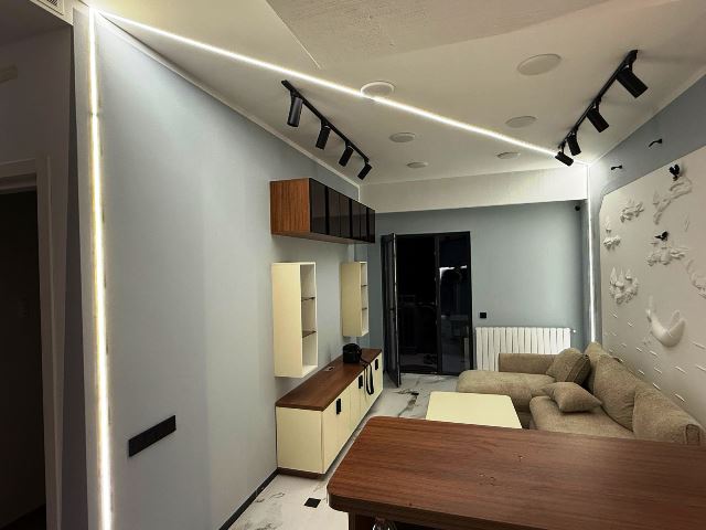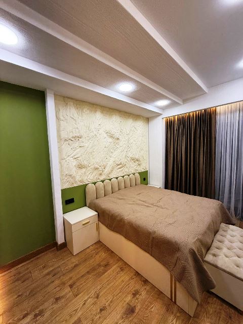 3-roomed 75 sq.m. apartment for rent in Didube, on Mirtskhulava str, in new building, on I floor, new beautiful designed renovated, with central heating, air-conditioner,, furniture, technique, internet, large balcony
