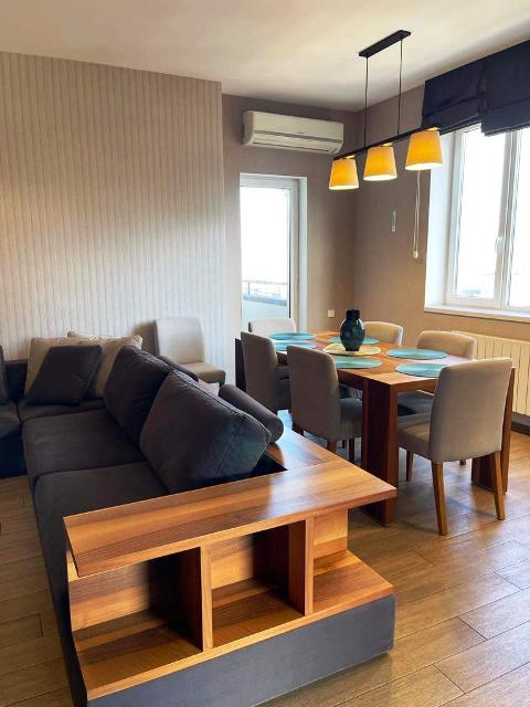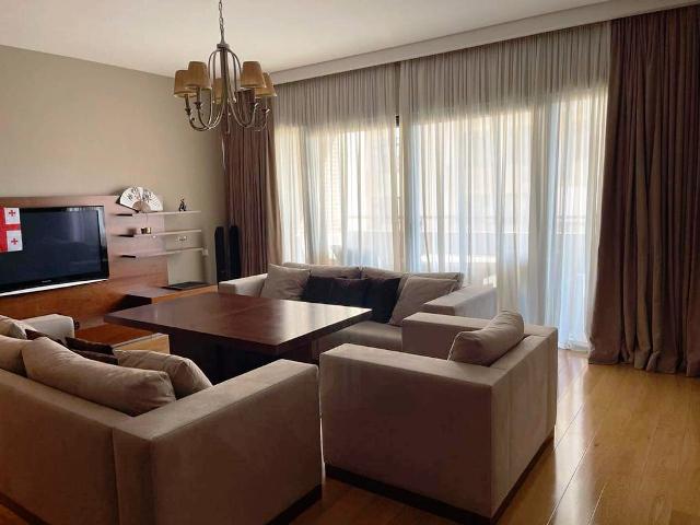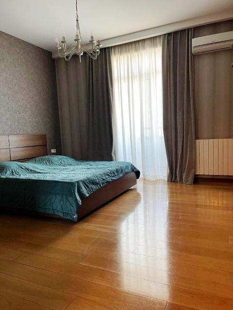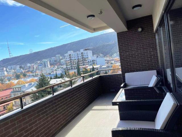 5-roomed 168 sq.m. apartment for rent in Vake, on Chavchavadze ave, in new building, on the 8th floor, new renovated, with central heating, air-conditioners, 2 bathrooms, wardrobe, furniture, technique, internet, balconies, veranda with beautiful views