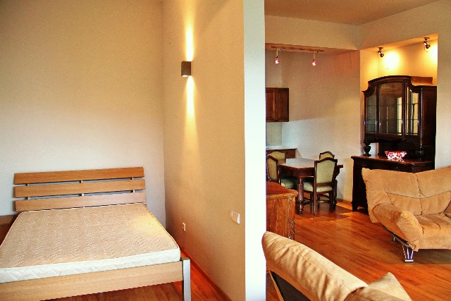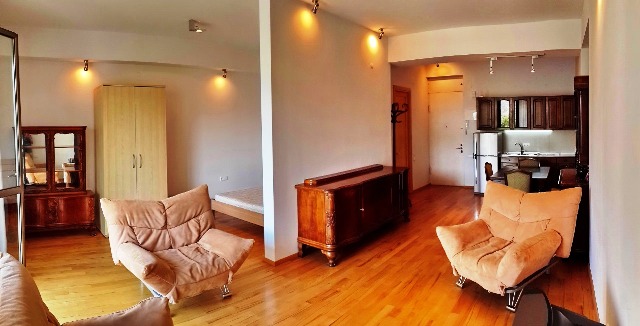 2-roomed 60 sq.m. apartment for rent in Saburtalo, on Tamarashvili str, in new building of Axis, on the 5th floor, new renovated, with central heating, air-conditioner, furniture, technique, internet, balcony