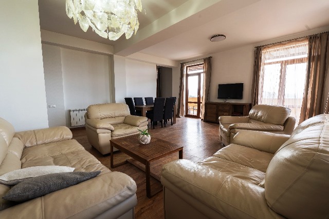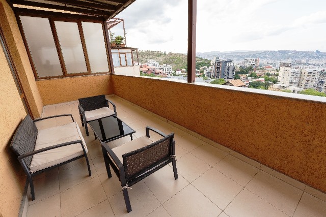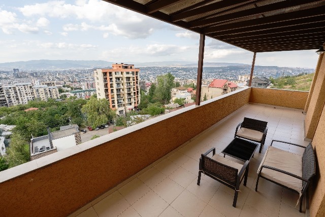4-roomed 200 sq.m. apartment for rent on Vera, Japaridze str, in new building, on the 6th floor, new renovated, with central heating, air-conditioners, 2 bathrooms, isolated kitchen, furniture, technique, internet, balcony, veranda