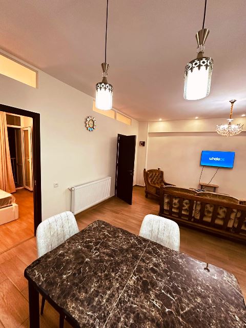 3-roomed 69 sq.m. apartment for rent in Saburtalo, on Tavadze str, near Delisi metro, on the 9th floor, new renovated, with central heating, air-conditioner, furniture, technique, internet, balcony