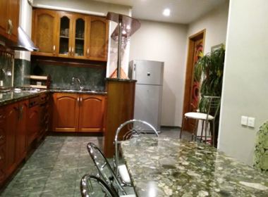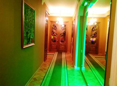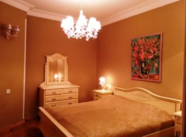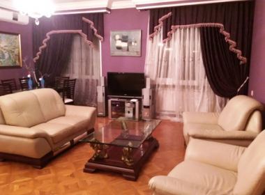 4-roomed 160 sq.m. apartment for rent on Vera, Gudauri str, in new building, on the 7th floor, new renovated, with fireplace, central heating, 2 sanitarty units, jacuzzi, furniture, all technique, seasonal conditioner, telephone, internet, metal door, jalousie, 3 balconies, garage