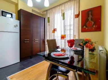 2-roomed apartment for rent in Saburtalo, on Vazha-Pshavela ave, in new building of "REDIX", on the 9th floor, new renovated, with central heating, seasonal conditioner, modern furniture and technique, internet, balcony, security in the building
