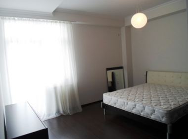 3-roomed apartment for rent in Vake, on Abuladze str, in new building, on the 13th floor, newly modern renovated, with central heating, 2 bathrooms, separate kitchen, new furniture and technique, telephone, internet, metal door, 2 balconies with beautiful views, modern lift, autoparking