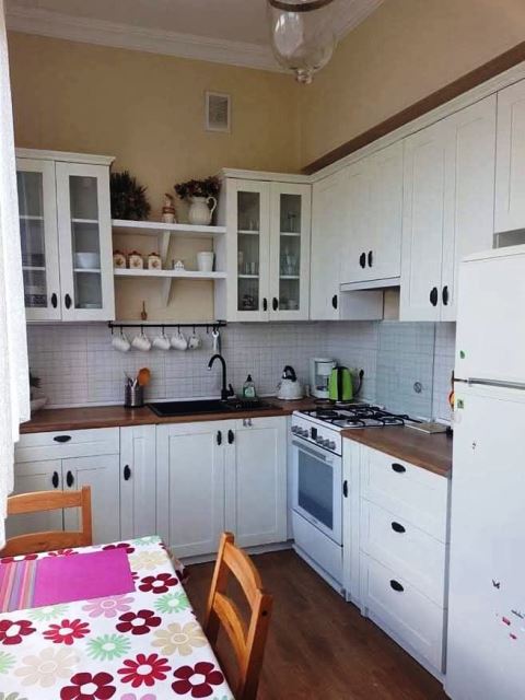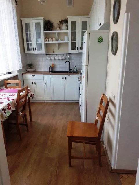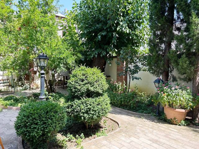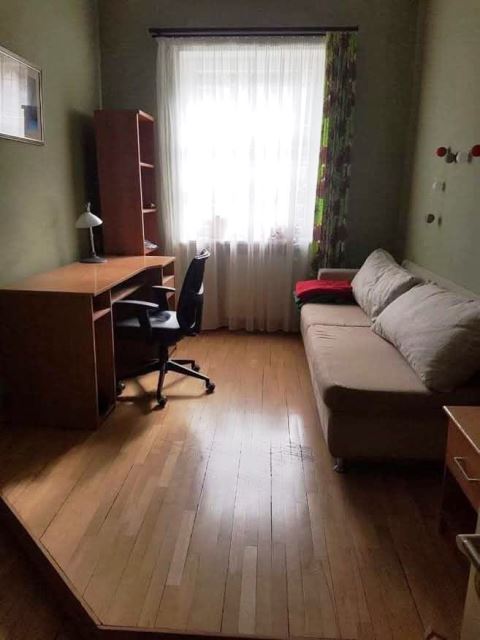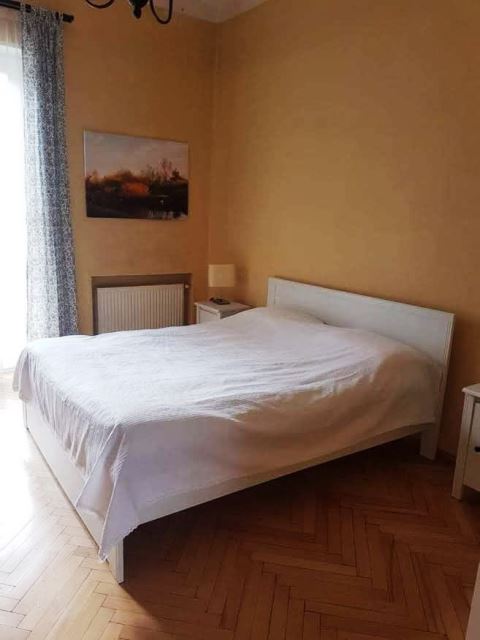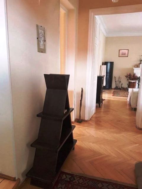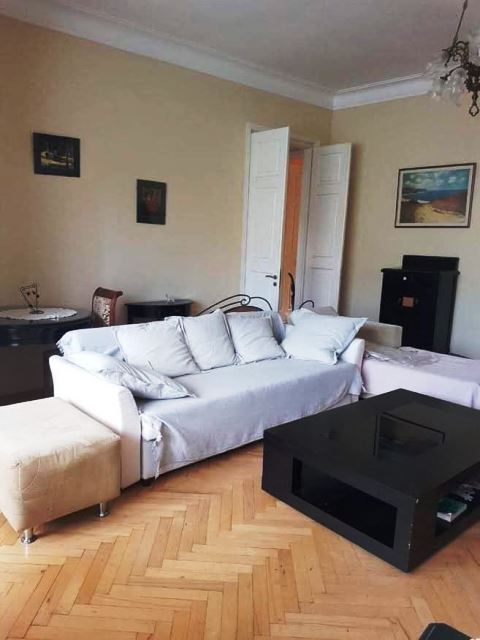 4-roomed apartment for rent in Vake, on Razmadze str, II floor of 3-storied private house, total space - 135 sq.m., with 2 bedrooms, cabinet, isolated kitchen, 1 bathroom, renovated, with furniture and technique, fireplace, 2 air-conditioners, central heating, internet, balcony, beautiful yard