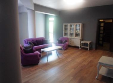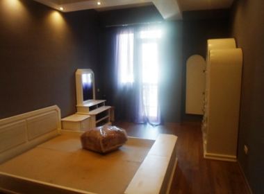 3-roomed 142 sq.m. apartment for rent in Vake, on Mukhadze str, in new building, on the third floor, new renovated, with central heating, dressing room, furniture, technique, telephone, internet, metal door, 2 balconies, garage