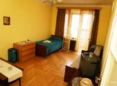 1-roomed 40 sq.m. apartment for rent in Saburtalo, on Dolidze str, on the 8th floor, old renovated, with heating, hot water, furniture and technique, telephone, internet, balcony