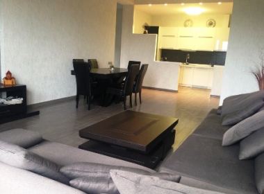 ქირავდება 3–ოთახიანი 140 კვ.მ–ის ბინა ვაკეში, რამიშვილის ქუჩაზე, ახალაშენებულ კორპუსში, მე–7 სართულზე, ახალი რემონტით, ცენტრალური გათბობით, 2 სველი წერტილით, კონდიციონერით, ავეჯით, ტექნიკით, ტელეფონით, ინტერნეტით, რკინის კარით, 3 აივნით, მიწისქვეშა ავტოპარკინგით