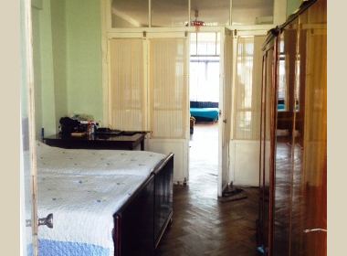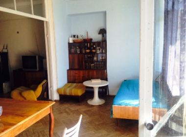 იყიდება 2,5–ოთახიანი 96 კვ.მ–ის არასტანდარტული პროექტის ბინა საბურთალოზე, ჩიქოვანის ქუჩაზე, მე–9 სართულზე, ჭერის სიმაღლე – 3 მ., ლოჯით, ძველი რემონტით, გათბობით, ცხელი წყლით, ტელეფონით, ინტერნეტით, რკინის კარით, 2 აივნით