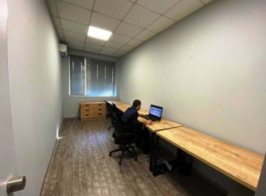 ქირავდება 77 კვ.მ-ის საოფისე ფართი საბურთალოზე, გამრეკელის ქუჩაზე, ახალაშენებულ ბიზნეს-ცენტრში, მე-5 სართულზე, 4 ოთახი, ახალი რემონტით, ცენტრალური გათბობით, კონდიციონერით, საოფისე ავეჯით, სამზარეულოთი, ტელეფონით, ინტერნეტით, დაცვით, ფასში არ შედის საშემოსავლო გადასახადი