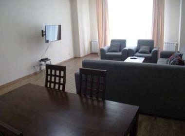 ქირავდება 3-ოთახიანი 127 კვ.მ-ის ბინა საბურთალოზე, ბახტრიონის ქუჩაზე, ახალაშენებულ AXIS-ის კორპუსში, მე-6 სართულზე, ახალი რემონტით, ცენტრალური გათბობით, 2 სველი წერტილით, კონდიციონერით, ავეჯით, ტექნიკით, ტელეფონით, ინტერნეტით, რკინის კარით, 2 აივნით, დაცვით კორპუსში