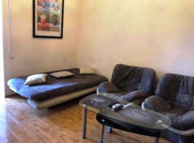 ქირავდება 2-ოთახიანი 50 კვ.მ-ის ბინა დღიურად სოლოლაკში, ბარათაშვილის ქუჩაზე, მე-2 სართულზე, ახალი რემონტით, ცენტრალური გათბობით, კონდიციონერით, ავეჯით, ტექნიკით, ტელეფონით, ინტერნეტით, რკინის კარით, დიდი აივნით