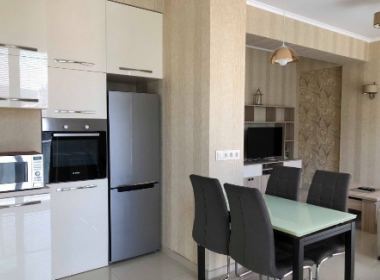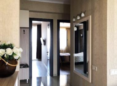 ქირავდება 3-ოთახიანი 100 კვ.მ-ის ბინა საბურთალოზე, ბახტრიონის ქუჩაზე, ახალაშენებულ კორპუსში, მე-12 სართულზე, ახალი რემონტით, ცენტრალური გათბობით, კონდიციონერით, ავეჯით, ტექნიკით, ტელეფონით, ინტერნეტით, რკინის კარით, აივნით