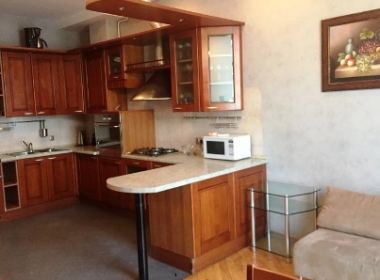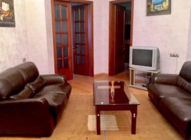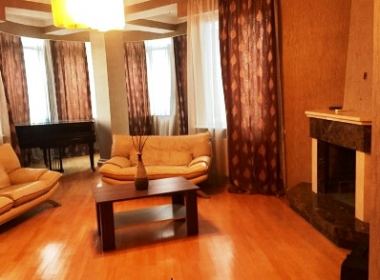 ქირავდება 5-ოთახიანი 150 კვ.მ-ის ბინა ვერაზე, ბარნოვის ქუჩაზე, მე-5 სართულზე, 2 საძინებლით, ახალი რემონტით, ცენტრალური გათბობით, 2 სველი წერტილით, საგარდერობეთი, ბუხრით, კონდიციონერით, ავეჯით, ტექნიკით, ტელეფონით, ინტერნეტით, რკინის კარით, 3 აივნით, ავტოფარეხით, დაცვით კორპუსში