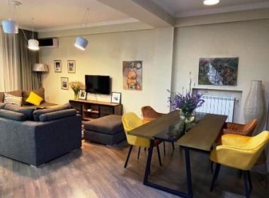 ქირავდება 3-ოთახიანი 155 კვ.მ-ის ბინა ვაკეში, რაზმაძის ქუჩაზე, ახალაშენებულ კორპუსში, მე-6 სართულზე, ახალი რემონტით, სტუდიოს ტიპის მისაღებით, ცენტრალური გათბობით, 2 კონდიციონერით, 2 სველი წერტილით, საგარდერობეთი, ავეჯით, ტექნიკით (ჭურჭლის სარეცხი მანქანა), აივნით, ვერანდით