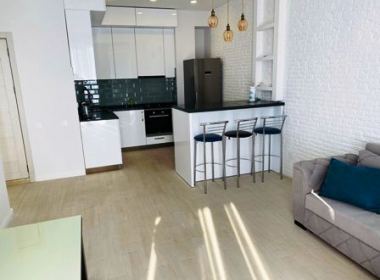 ქირავდება 2-ოთახიანი 62 კვ.მ-ის ბინა კრწანისში, კრწანისის ქუჩაზე, ახალაშენებულ კორპუსში, მე-11 სართულზე, ახალი რემონტით, სტუდიოს ტიპის მისაღებით, ცენტრალური გათბობით, კონდიციონერით, ავეჯით, ტექნიკით (ჭურჭლის სარეცხი მანქანით), ინტერნეტით, ვერანდით ლამაზი ხედით, დაცვით კორპუსში, პარკინგით