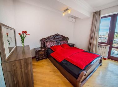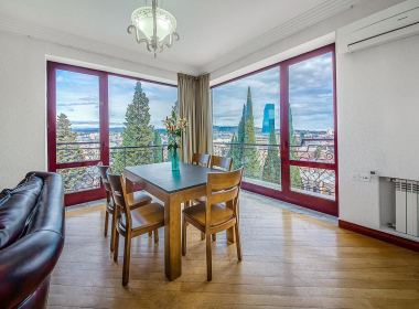 ქირავდება 5-ოთახიანი 220 კვ.მ-ის ბინა ვერაზე, ბოცვაძის ქუჩაზე, ახალაშენებულ კორპუსში, მე-4 სართულზე, ახალი რემონტით, ცენტრალური გათბობით, 2 სველი წერტილით, იზოლირებული სამზარეულოთი, კონდიციონერებით, ავეჯით, ტექნიკით, ინტერნეტით, აივნებით, ვერანდებით ულამაზესი ხედით