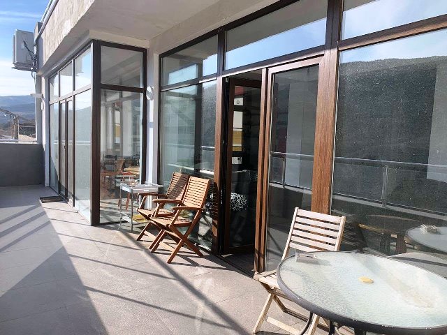 ქირავდება 5-ოთახიანი 230 კვ.მ-ის ბინა საბურთალოზე, დანელიას ქუჩაზე, მე-3 სართულზე, ახალი რემონტით, ცენტრალური გათბობით, კონდიციონერებით, 3 სველი წერტილით, საგარდერობეთი, ავეჯით, ტექნიკით, ინტერნეტით, აივნით, ვერანდით
