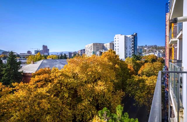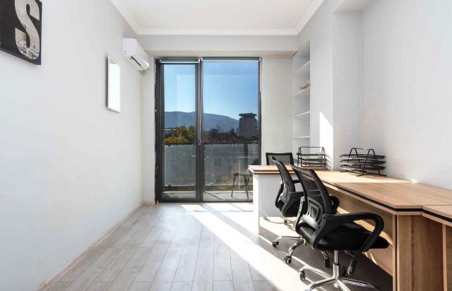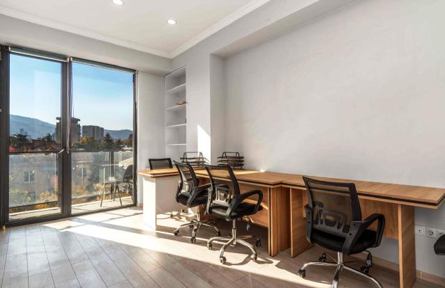 Сдается офисная площадь (53 кв.м.) в Сабуртало, на ул. Шартава, в новостройке, VI этаж, 2 комнаты, с новым ремонтом, центральным отоплением, кондиционером, офисной мебелью, интернетом, балконом, паркингом